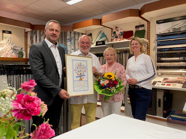 Selten haben Bereichsleiterin Ann-Kristin Erdmann und Obermeister Georg Berste gleich 3 Urkunden zum Verleihen im Gepäck. Den Anfang machten sie mit der Überreichung des 65-jährigen Diamantenen Meisterbriefes an Raumausstattermeister Paul Antonius…